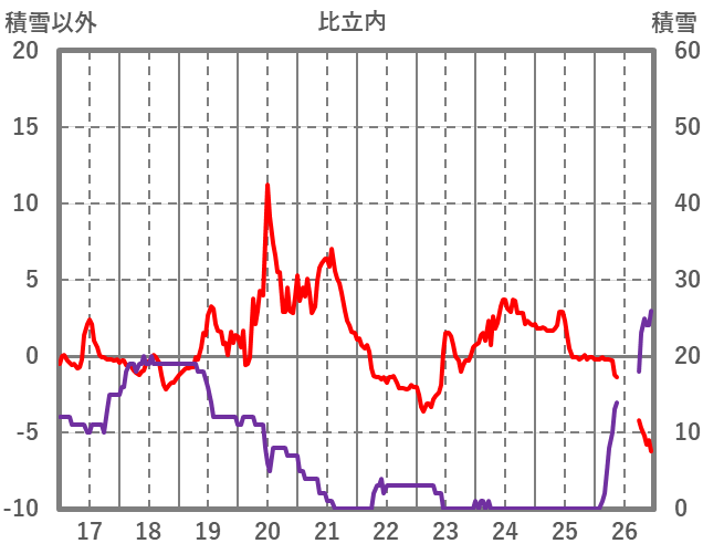 | 日 | 時 | 気温 | 降水 | 風向/風速 | 日照 | 積雪 | 降雪 |