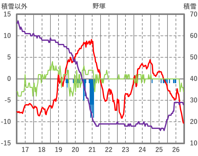 | 日 | 時 | 気温 | 降水 | 風向/風速 | 日照 | 積雪 | 降雪 |