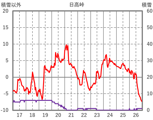 | 日 | 時 | 気温 | 降水 | 風向/風速 | 日照 | 積雪 | 降雪 |