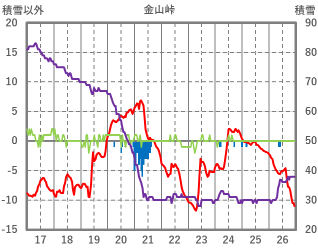 | 日 | 時 | 気温 | 降水 | 風向/風速 | 日照 | 積雪 | 降雪 |