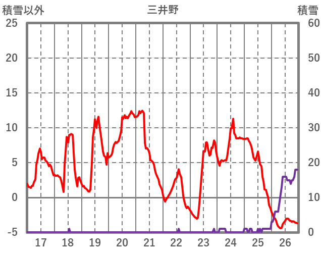 | 日 | 時 | 気温 | 降水 | 風向/風速 | 日照 | 積雪 | 降雪 |