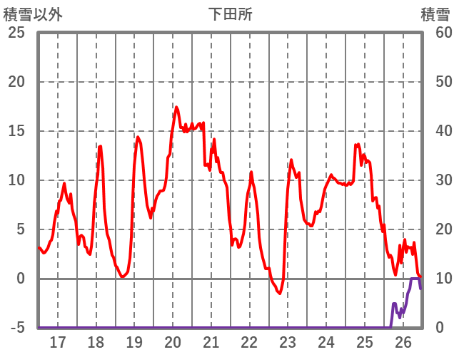 | 日 | 時 | 気温 | 降水 | 風向/風速 | 日照 | 積雪 | 降雪 |