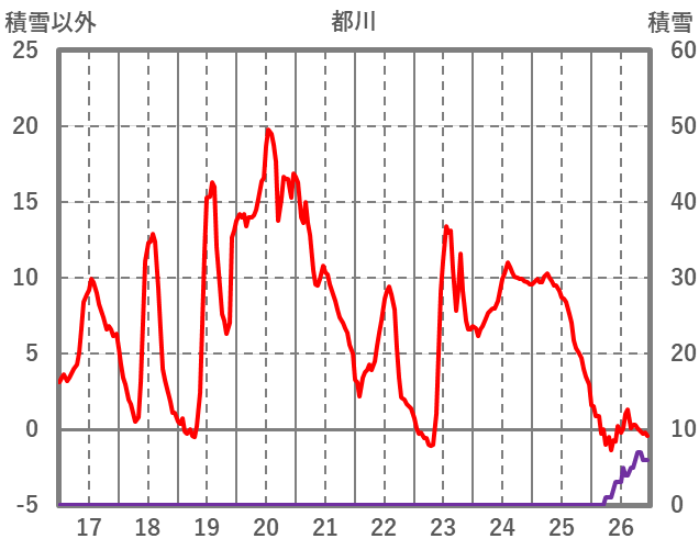 | 日 | 時 | 気温 | 降水 | 風向/風速 | 日照 | 積雪 | 降雪 |