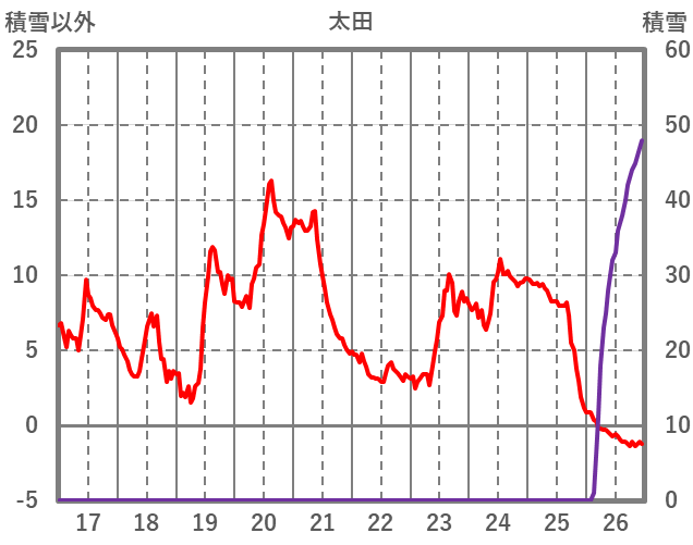 | 日 | 時 | 気温 | 降水 | 風向/風速 | 日照 | 積雪 | 降雪 |