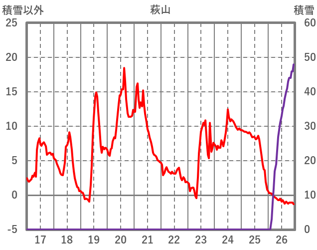 | 日 | 時 | 気温 | 降水 | 風向/風速 | 日照 | 積雪 | 降雪 |