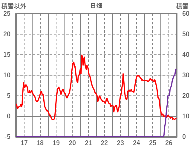| 日 | 時 | 気温 | 降水 | 風向/風速 | 日照 | 積雪 | 降雪 |