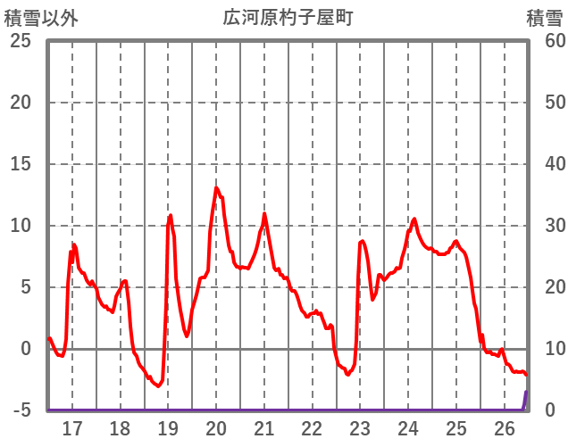 | 日 | 時 | 気温 | 降水 | 風向/風速 | 日照 | 積雪 | 降雪 |