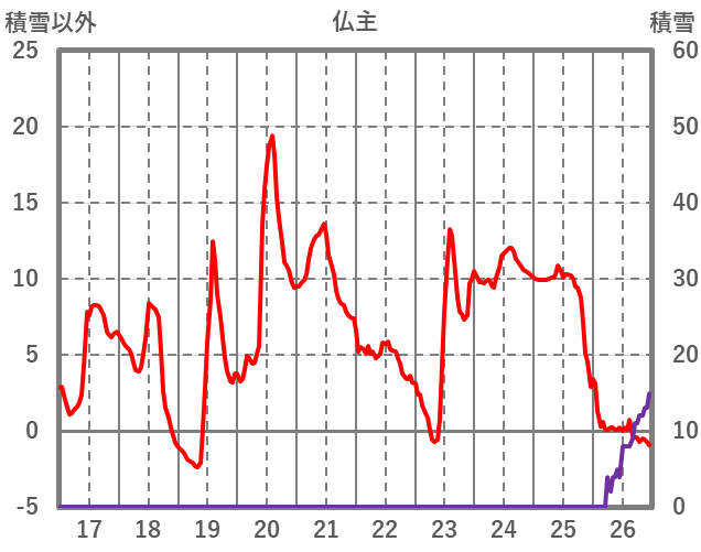 | 日 | 時 | 気温 | 降水 | 風向/風速 | 日照 | 積雪 | 降雪 |