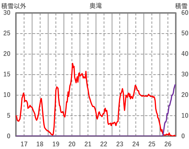 | 日 | 時 | 気温 | 降水 | 風向/風速 | 日照 | 積雪 | 降雪 |