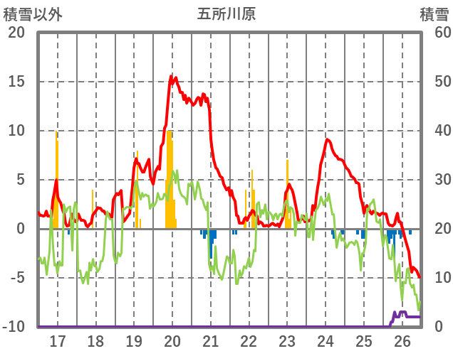 | 日 | 時 | 気温 | 降水 | 風向/風速 | 日照 | 積雪 | 降雪 |