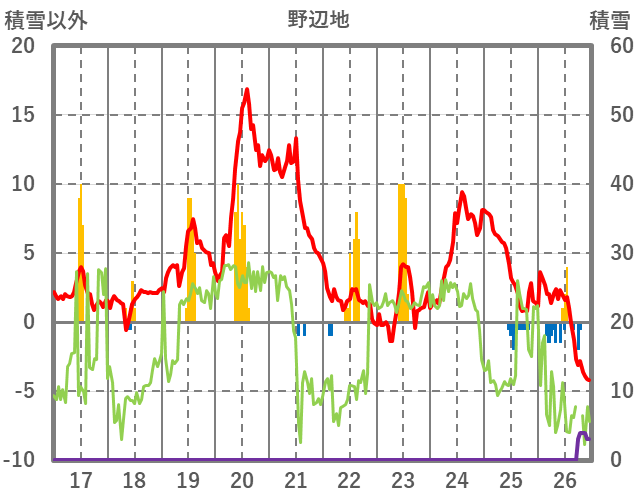 | 日 | 時 | 気温 | 降水 | 風向/風速 | 日照 | 積雪 | 降雪 |