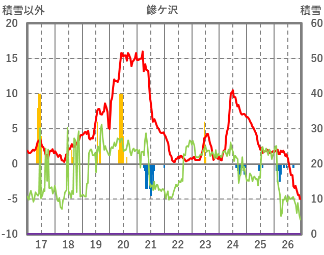 | 日 | 時 | 気温 | 降水 | 風向/風速 | 日照 | 積雪 | 降雪 |