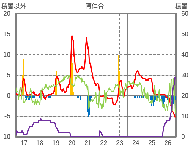| 日 | 時 | 気温 | 降水 | 風向/風速 | 日照 | 積雪 | 降雪 |