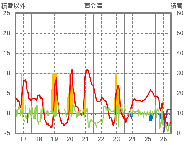 | 日 | 時 | 気温 | 降水 | 風向/風速 | 日照 | 積雪 | 降雪 |