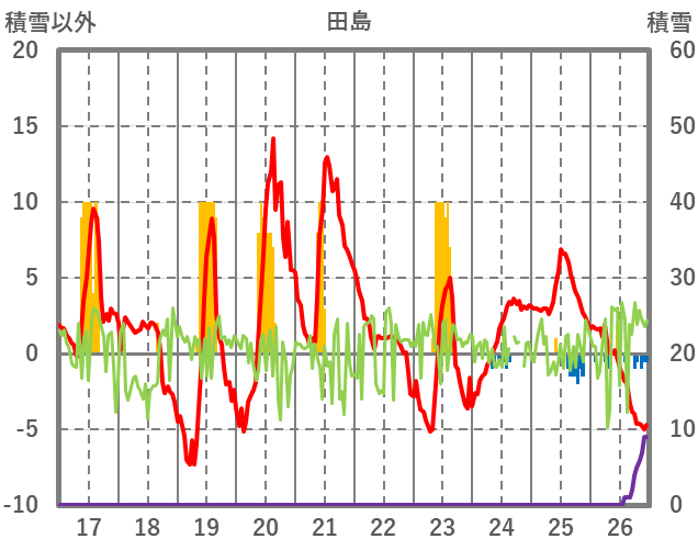 | 日 | 時 | 気温 | 降水 | 風向/風速 | 日照 | 積雪 | 降雪 |