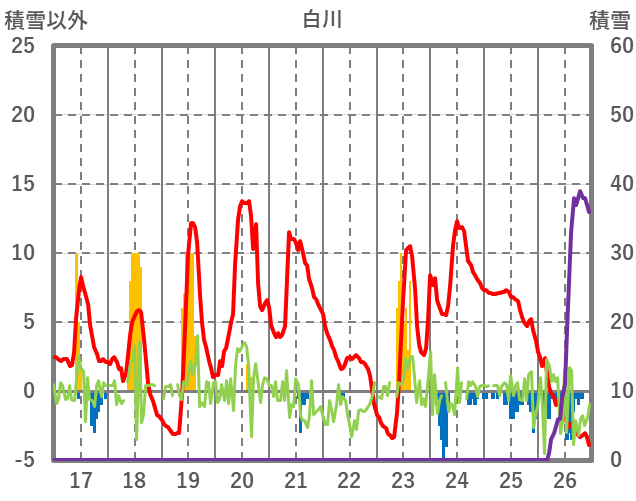 | 日 | 時 | 気温 | 降水 | 風向/風速 | 日照 | 積雪 | 降雪 |