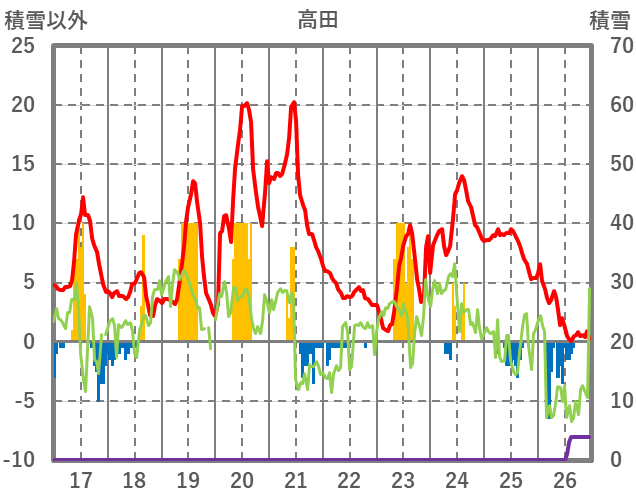| 日 | 時 | 気温 | 降水 | 風向/風速 | 日照 | 積雪 | 降雪 |