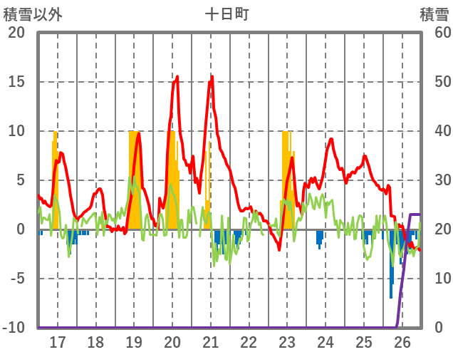 | 日 | 時 | 気温 | 降水 | 風向/風速 | 日照 | 積雪 | 降雪 |