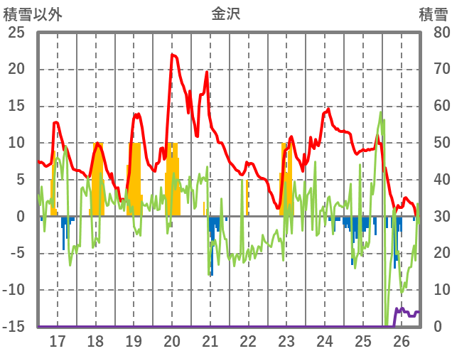 | 日 | 時 | 気温 | 降水 | 風向/風速 | 日照 | 積雪 | 降雪 |