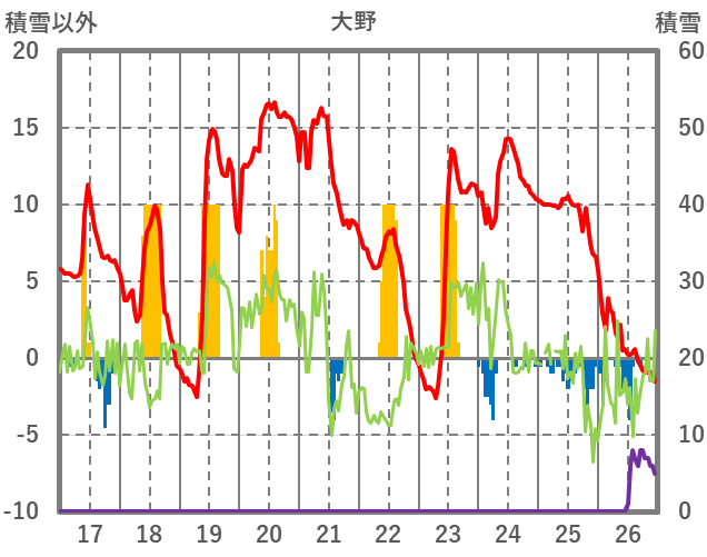 | 日 | 時 | 気温 | 降水 | 風向/風速 | 日照 | 積雪 | 降雪 |