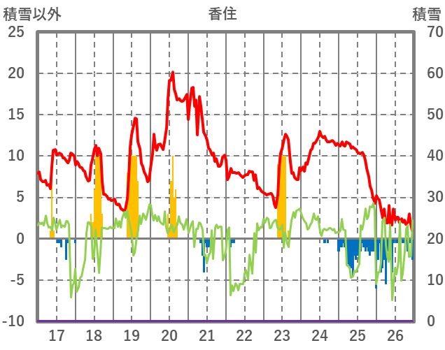 | 日 | 時 | 気温 | 降水 | 風向/風速 | 日照 | 積雪 | 降雪 |