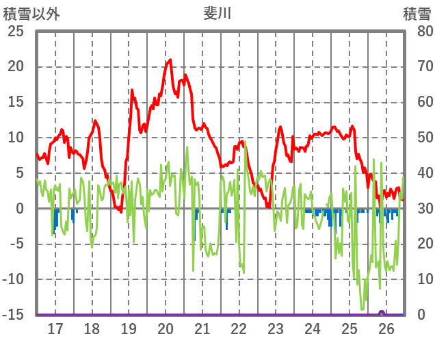 | 日 | 時 | 気温 | 降水 | 風向/風速 | 日照 | 積雪 | 降雪 |