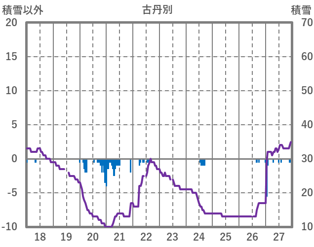 | 日 | 時 | 気温 | 降水 | 風向/風速 | 日照 | 積雪 | 降雪 |