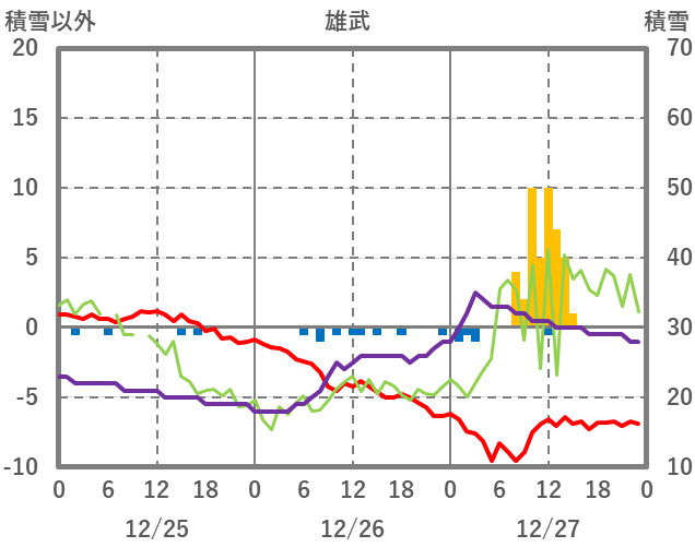 | 日 | 時 | 気温 | 降水 | 風向/風速 | 日照 | 積雪 | 降雪 |