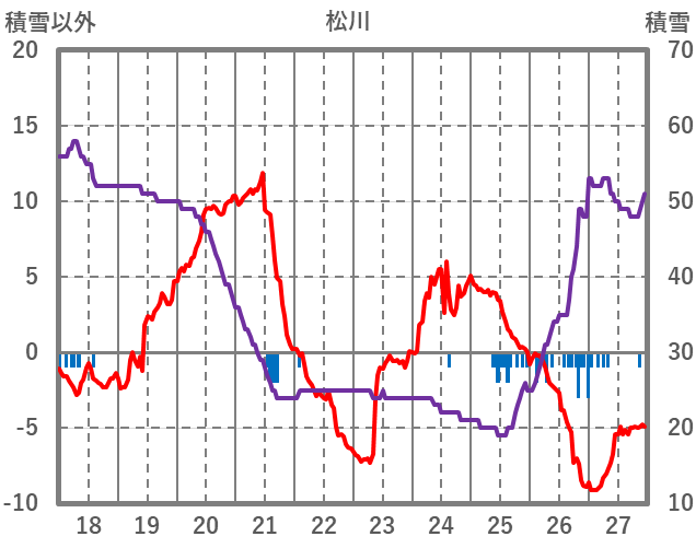 | 日 | 時 | 気温 | 降水 | 風向/風速 | 日照 | 積雪 | 降雪 |