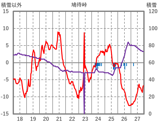 | 日 | 時 | 気温 | 降水 | 風向/風速 | 日照 | 積雪 | 降雪 |