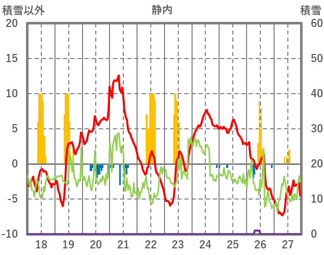 | 日 | 時 | 気温 | 降水 | 風向/風速 | 日照 | 積雪 | 降雪 |