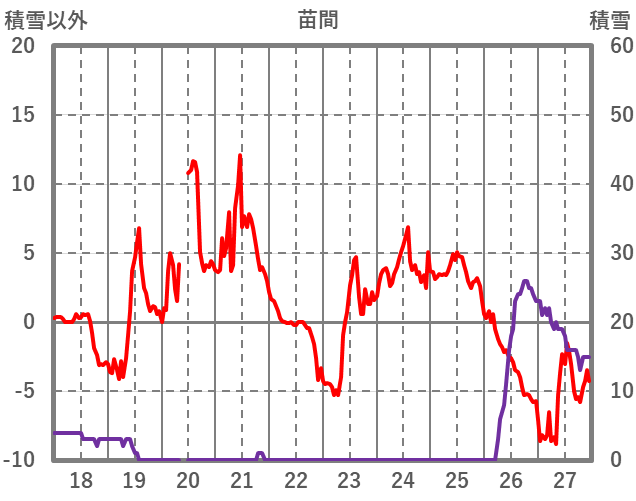 | 日 | 時 | 気温 | 降水 | 風向/風速 | 日照 | 積雪 | 降雪 |