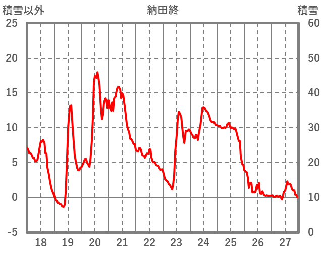 | 日 | 時 | 気温 | 降水 | 風向/風速 | 日照 | 積雪 | 降雪 |