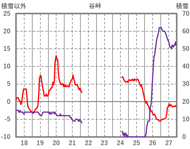 | 日 | 時 | 気温 | 降水 | 風向/風速 | 日照 | 積雪 | 降雪 |