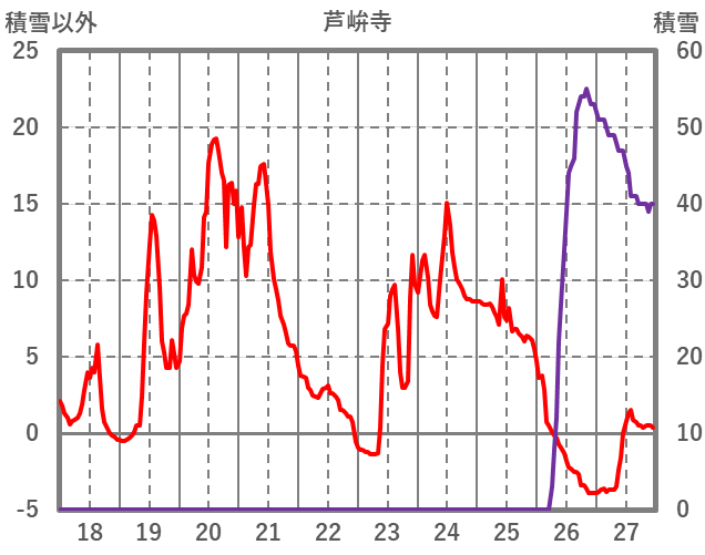 | 日 | 時 | 気温 | 降水 | 風向/風速 | 日照 | 積雪 | 降雪 |