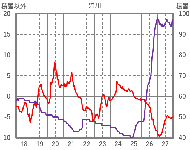 | 日 | 時 | 気温 | 降水 | 風向/風速 | 日照 | 積雪 | 降雪 |