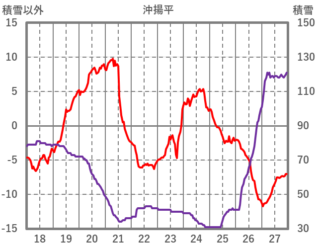 | 日 | 時 | 気温 | 降水 | 風向/風速 | 日照 | 積雪 | 降雪 |