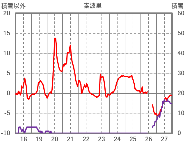 | 日 | 時 | 気温 | 降水 | 風向/風速 | 日照 | 積雪 | 降雪 |