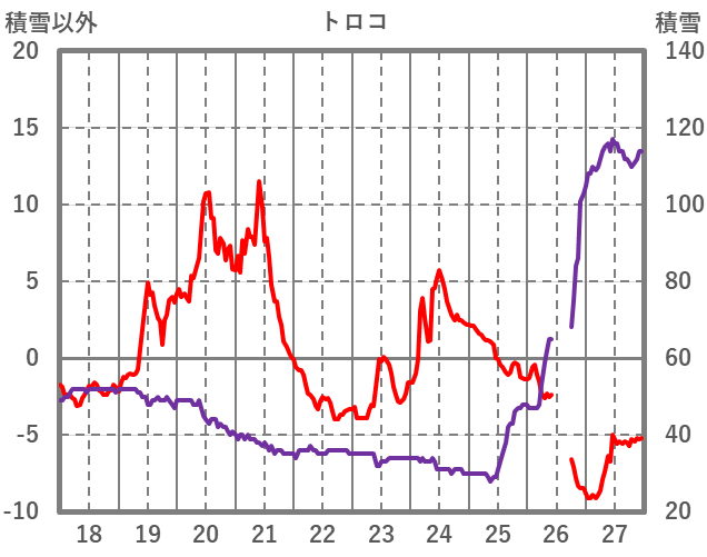 | 日 | 時 | 気温 | 降水 | 風向/風速 | 日照 | 積雪 | 降雪 |