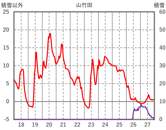 | 日 | 時 | 気温 | 降水 | 風向/風速 | 日照 | 積雪 | 降雪 |