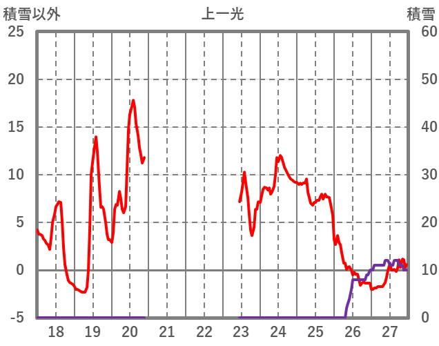 | 日 | 時 | 気温 | 降水 | 風向/風速 | 日照 | 積雪 | 降雪 |