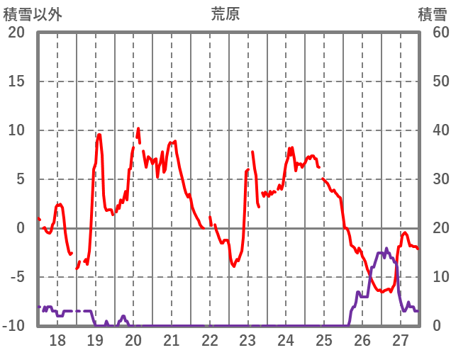 | 日 | 時 | 気温 | 降水 | 風向/風速 | 日照 | 積雪 | 降雪 |
