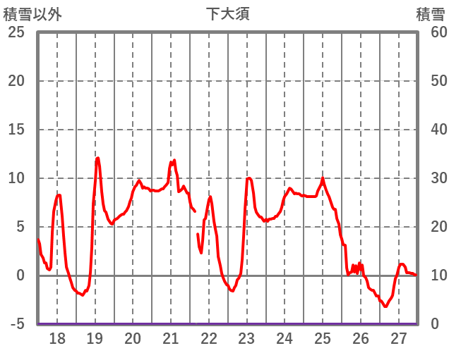 | 日 | 時 | 気温 | 降水 | 風向/風速 | 日照 | 積雪 | 降雪 |