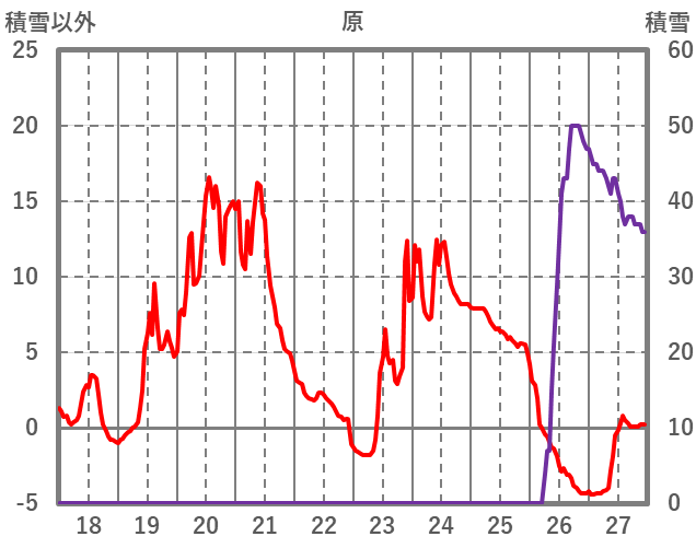 | 日 | 時 | 気温 | 降水 | 風向/風速 | 日照 | 積雪 | 降雪 |