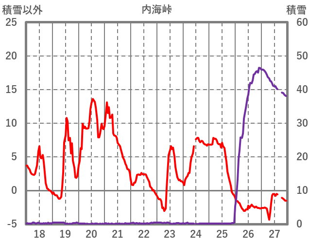 | 日 | 時 | 気温 | 降水 | 風向/風速 | 日照 | 積雪 | 降雪 |