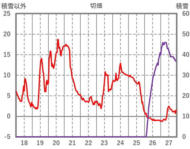 | 日 | 時 | 気温 | 降水 | 風向/風速 | 日照 | 積雪 | 降雪 |