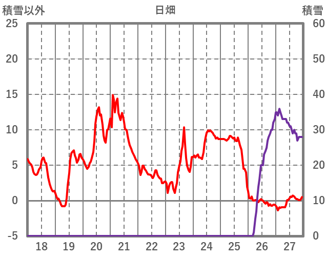 | 日 | 時 | 気温 | 降水 | 風向/風速 | 日照 | 積雪 | 降雪 |