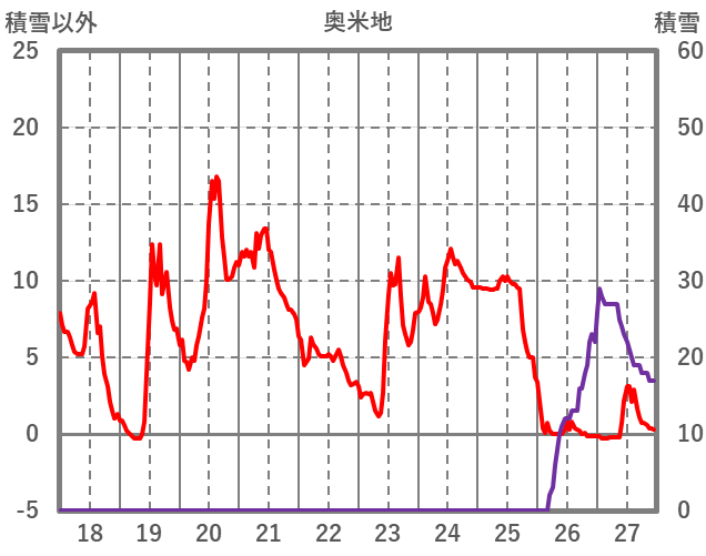 | 日 | 時 | 気温 | 降水 | 風向/風速 | 日照 | 積雪 | 降雪 |