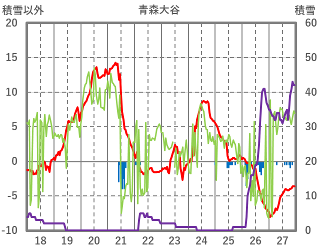 | 日 | 時 | 気温 | 降水 | 風向/風速 | 日照 | 積雪 | 降雪 |