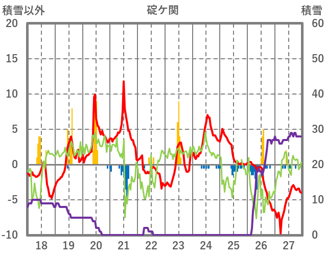 | 日 | 時 | 気温 | 降水 | 風向/風速 | 日照 | 積雪 | 降雪 |